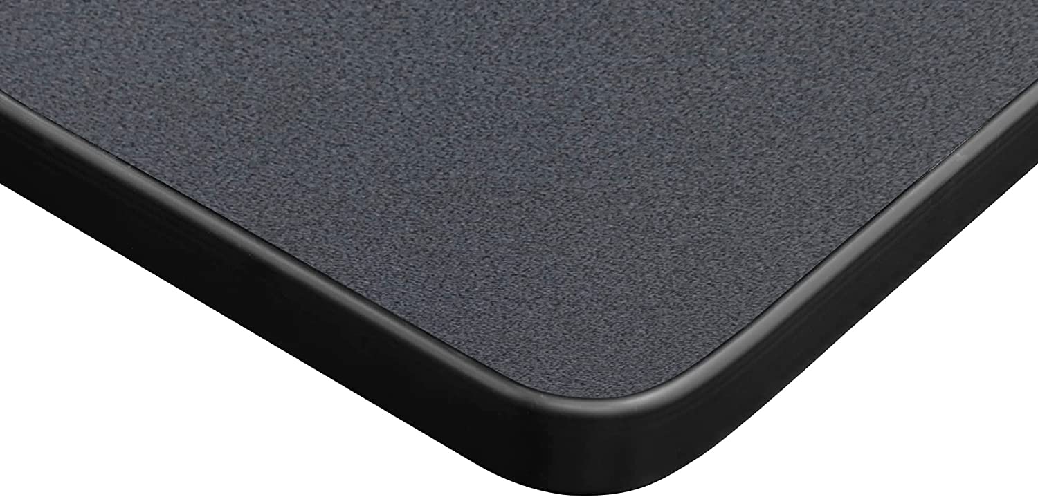 The table is constructed of a thermal fused Melamine grey laminate tabletop that is 1-inch thick and finished with a Black t-moulding edge Band.